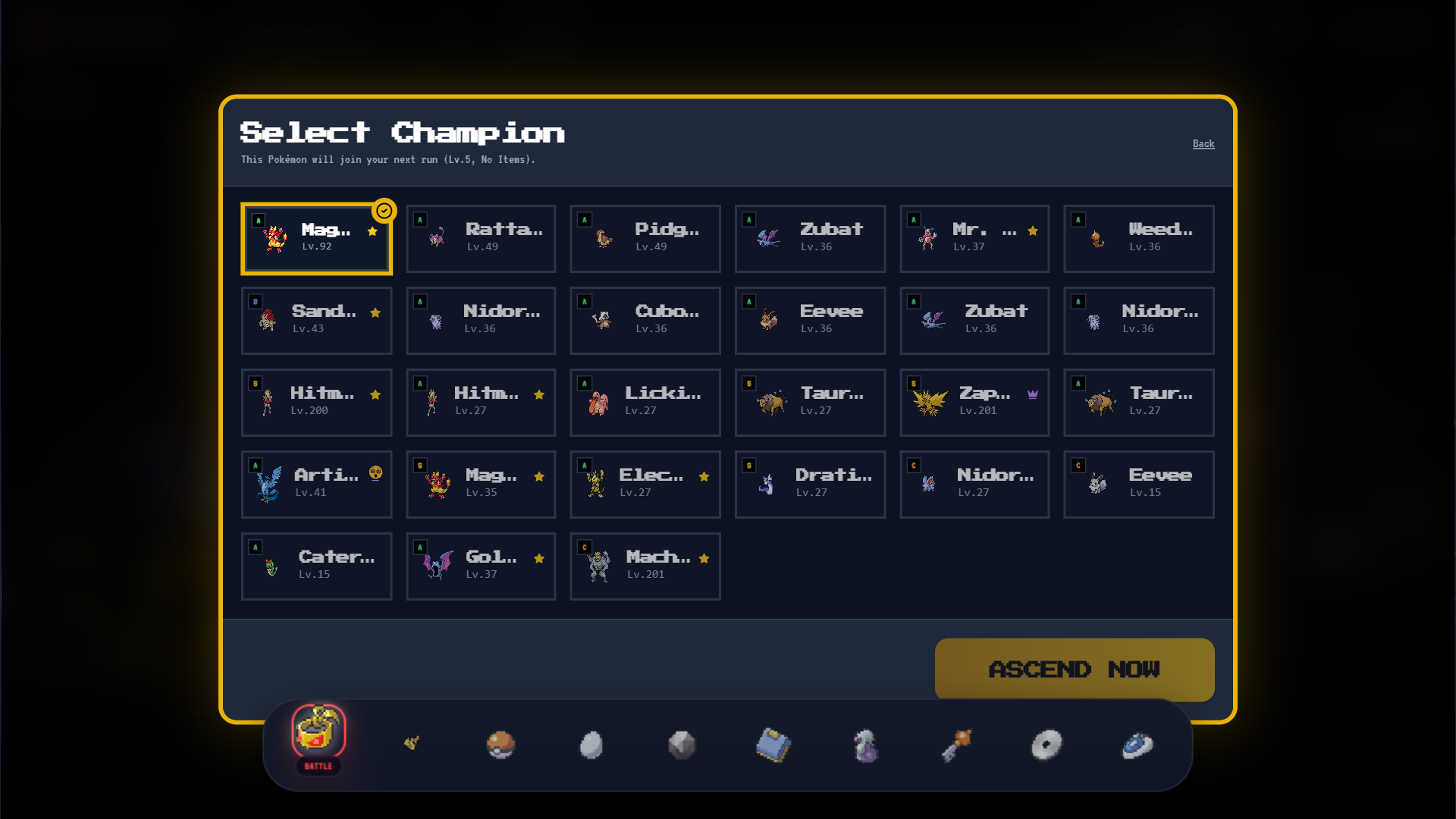 That said, your point is noted, if a lot of players express a strong preference for stricter Gen 1 accuracy (exact routes, rarities, evolutions per zone), we'll absolutely consider a toggle or full overhaul in the future. For now, we're focusing on polishing core features (UI revamp, evo stones/animations fix, better team management, casino balance, etc.) based on the most common feedback.